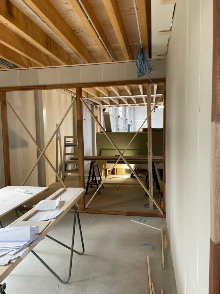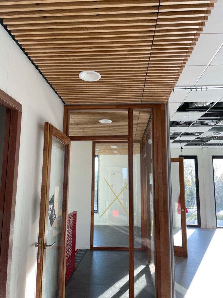Onze werkzaamheden bestonden onder andere uit het realiseren van verschillende binnenafwerkingen en het plaatsen van plafonds. Een bijzonder onderdeel van dit project was het monteren van een stijlvol houten lattenplafond, dat zorgt voor een warme en moderne uitstraling in het gebouw.